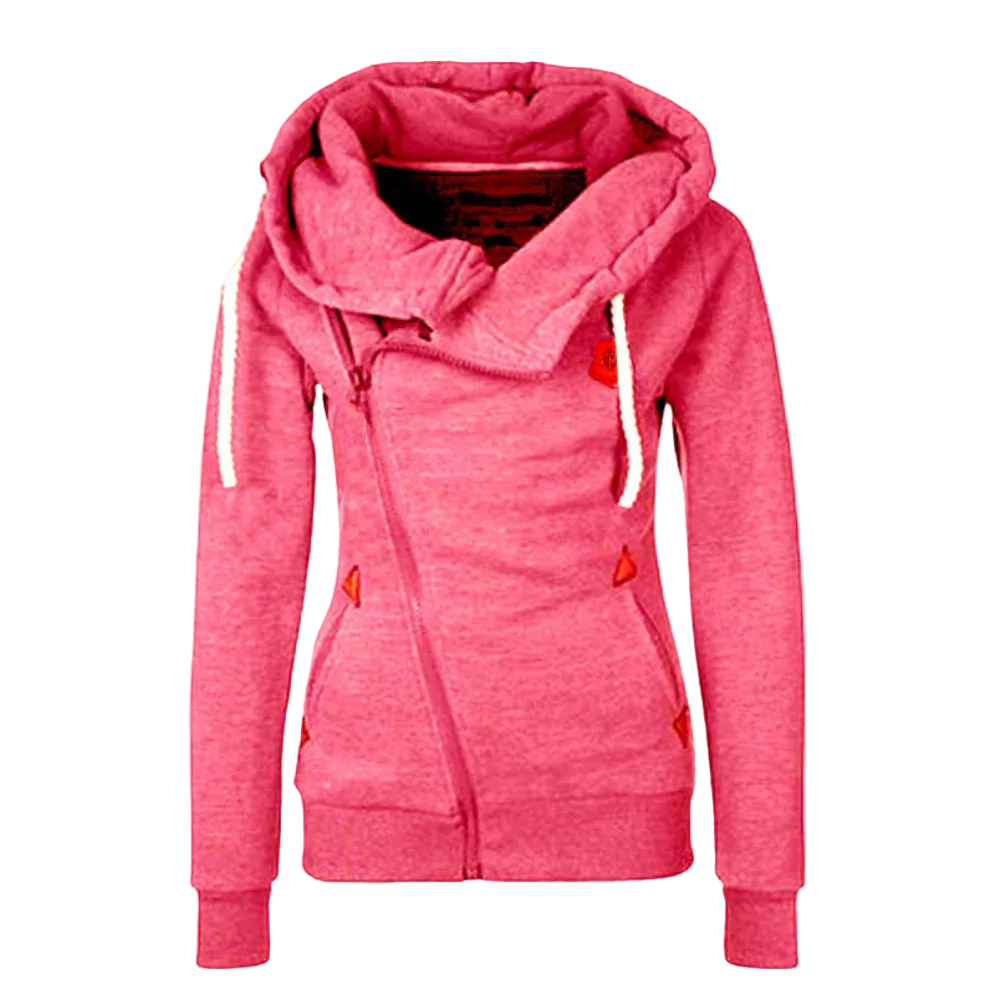 Damska bluza z kapturem i zamkiem błyskawicznym, z asymetrycznym zamkiem i przednimi kieszeniami
