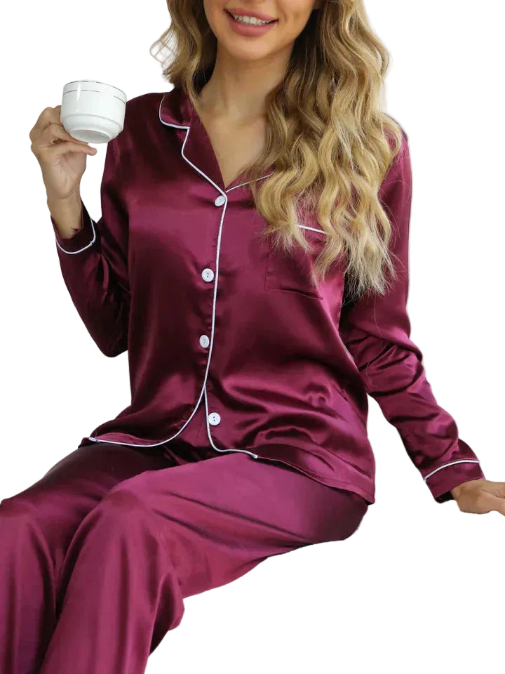 Damski Zestaw z Bluzką na Guziki z Długim Rękawem i Spodniami