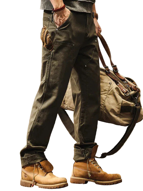 Męskie spodnie cargo o luźnym kroju z wieloma kieszeniami użytkowymi i prostą nogawką