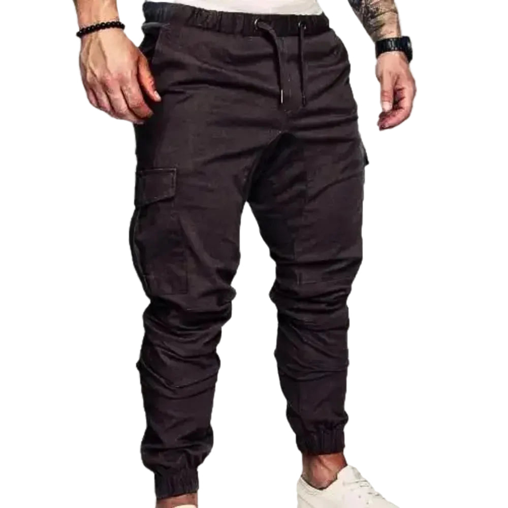 Męskie spodnie cargo o dopasowanym kroju z elastycznymi ściągaczami przy nogawkach i wiązaniem w pasie
