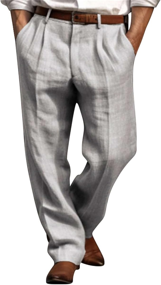 Męskie spodnie z prostymi nogawkami, plisami z przodu i kieszeniami bocznymi